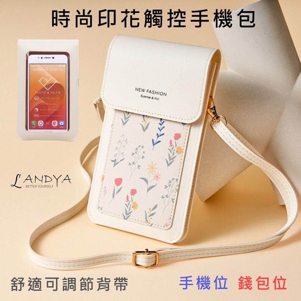 商品名稱:時尚印花觸控手機包 輕薄手機斜背包 頸掛 側背包 單肩女包 手機掛帶 手機套