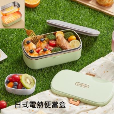 日式電熱便當盒 加熱保溫餐盒 插電蒸飯盒 保鮮盒 免加水 304不銹鋼 分隔便當盒 110V