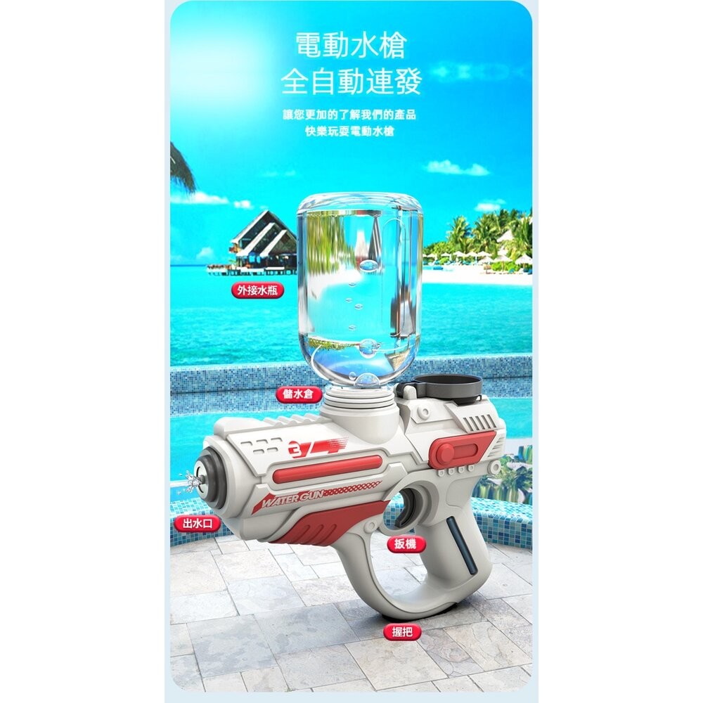 商品名稱:大容量電動連發水槍 全自動連發 外接擴充水瓶 兒童沙灘戲水玩具 送禮 童玩節2023
