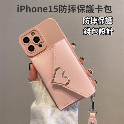 iPhone15防摔保護卡包 粉色愛心 防摔保護套 錢包 13/14/15適用