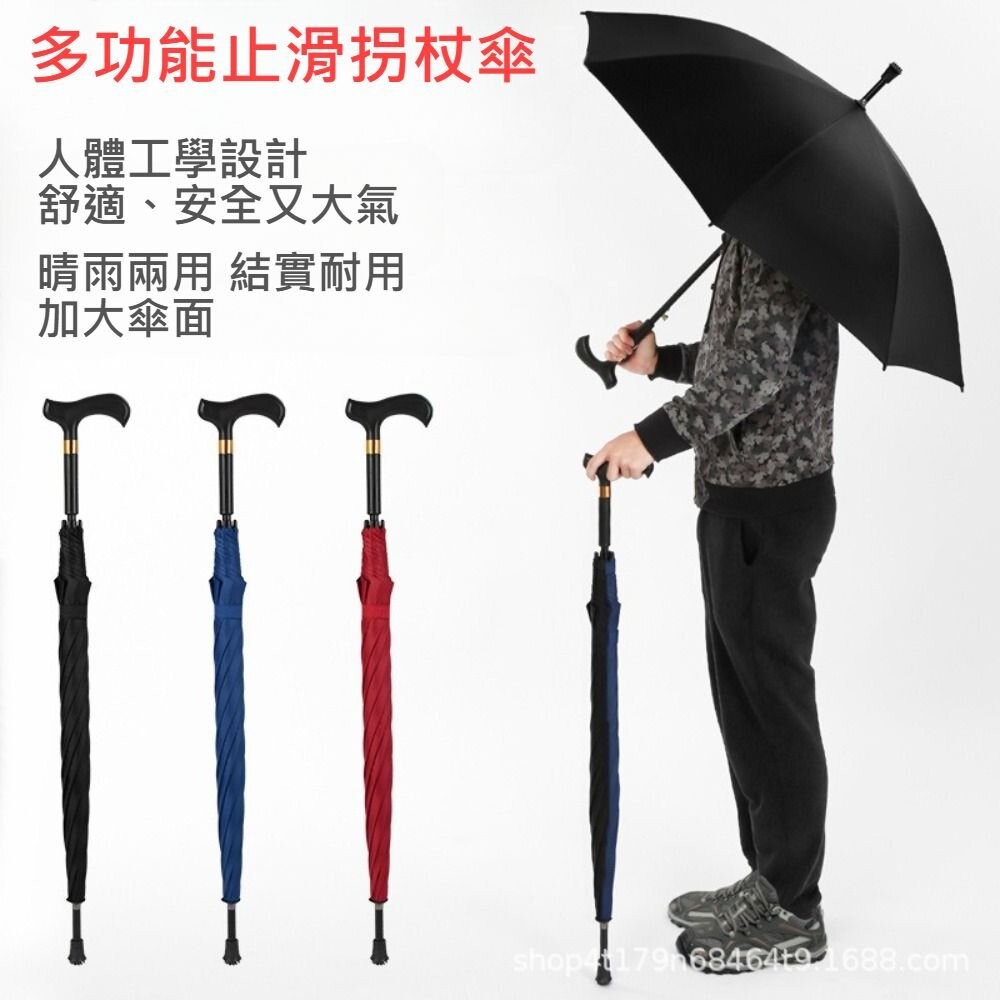 商品名稱:多功能止滑拐杖傘 老人長柄安全雨傘 加長加大防風傘 太陽傘 登山傘
