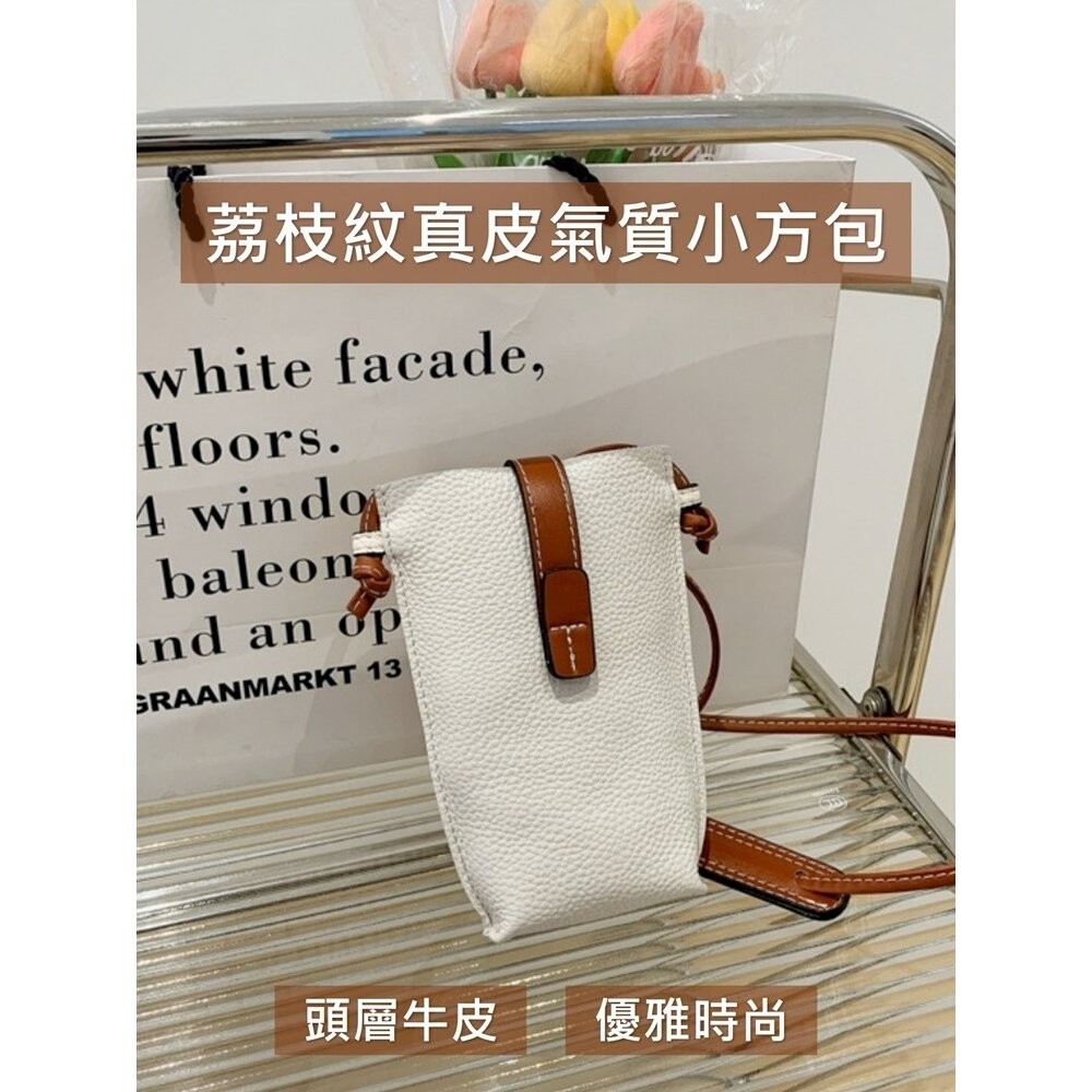 商品名稱:荔枝紋真皮氣質小方包 斜背包 頭層牛皮 手機包 側背包 女用單肩包 時尚優雅 送禮