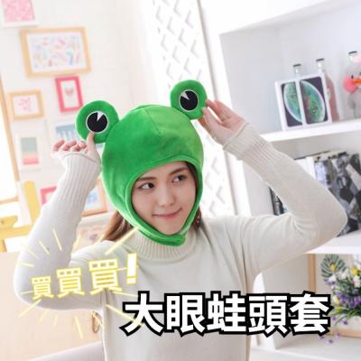 大眼青蛙頭套帽子 絨布頭套 卡通帽子 可愛 呆萌 網紅拍照專用 萬聖節 派對 交換禮物