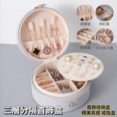 三層分隔迷你首飾盒 旅行便攜首飾收納盒 飾品收納盒 小首飾盒 珠寶盒 送禮
