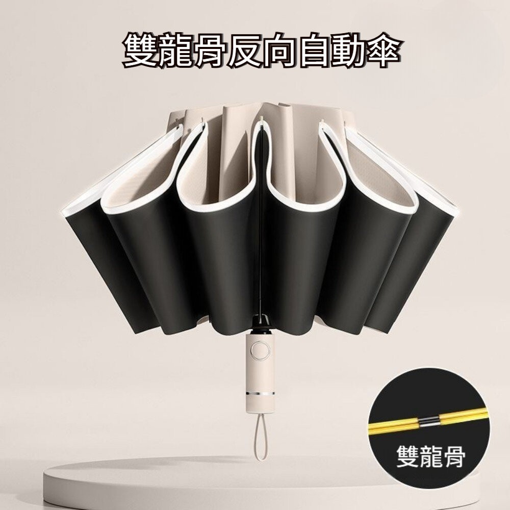 雙龍骨反向自動傘 車用反向傘 雙龍骨 反向自動傘 車用傘 黑膠碰擊布 便携耐用 不反光