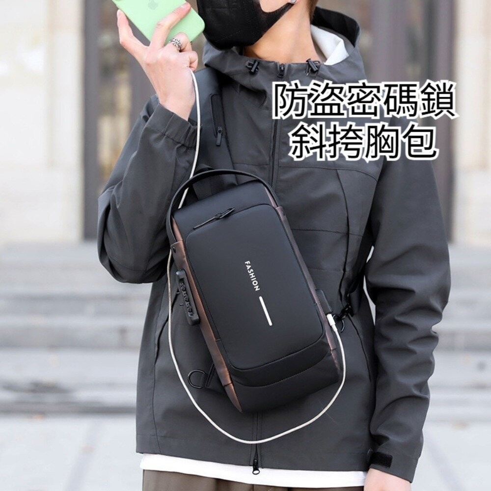 商品名稱:防盜密碼鎖斜挎胸包 韓版單肩斜挎包 機車包 密碼鎖潮包 耳機孔設計