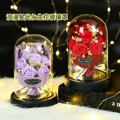 浪漫星光永生花玻璃罩 香皂玫瑰花玻璃罩 禮品 教師節禮物 情人節禮物 不凋謝 燈串 精緻手提袋