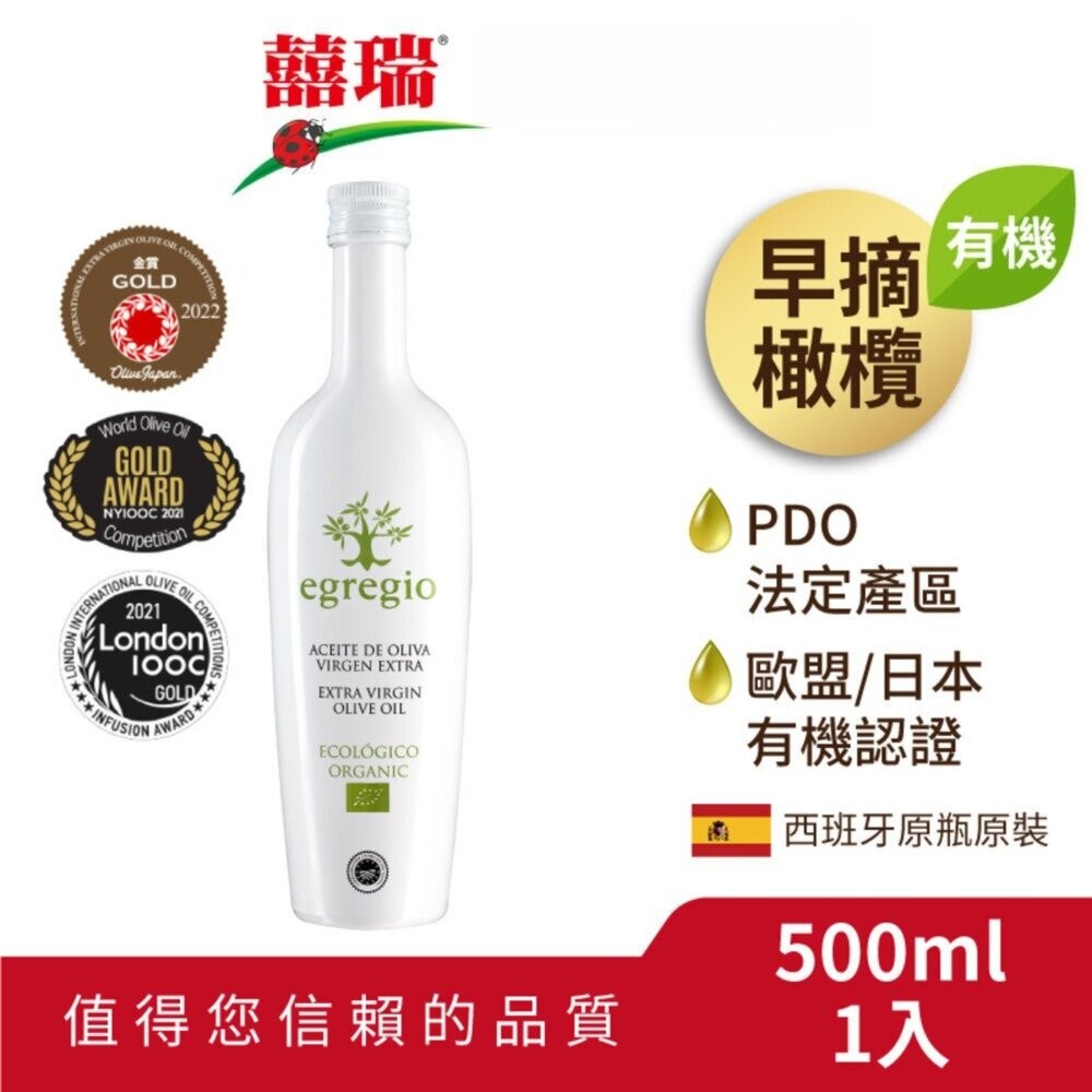 商品名稱:【囍瑞BIOES】依格閣有機特級100%初榨冷壓橄欖油 500ml 西班牙原裝進口 低酸價 歐盟有機認證