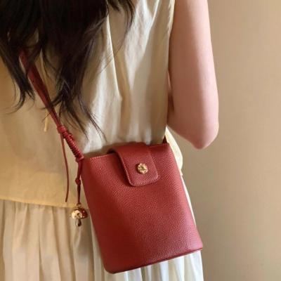 商品名稱:櫻桃紅皮革水桶包 女包 斜挎包 小包 通勤包 禮物 送禮