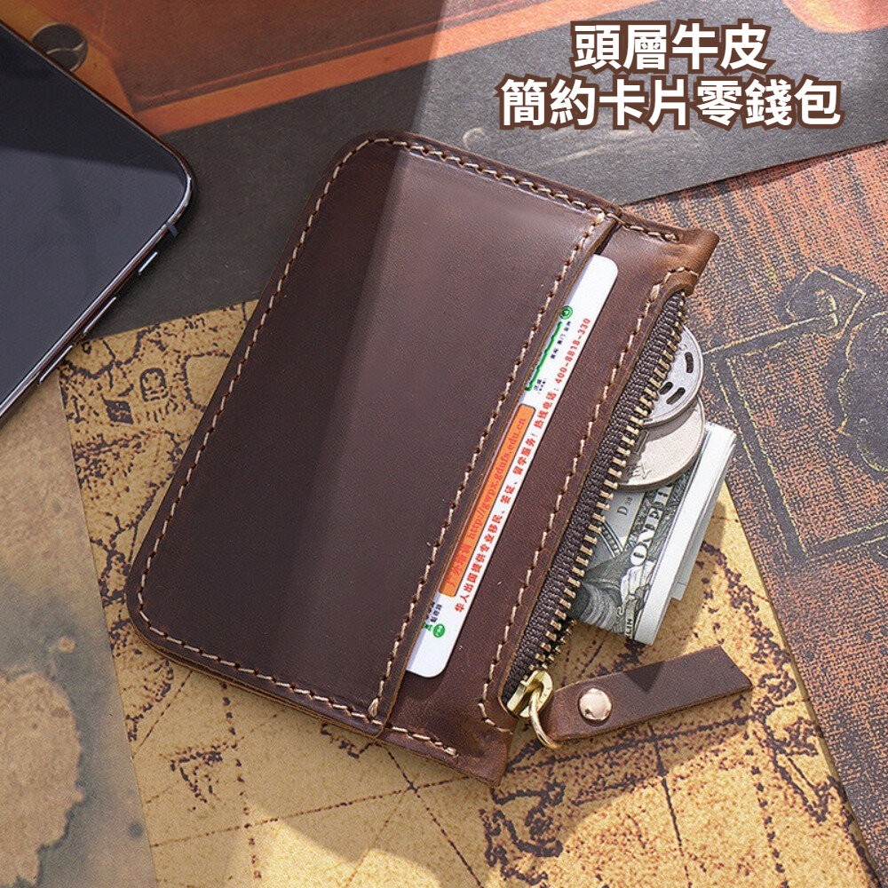 商品名稱:頭層牛皮簡約卡片零錢包 男女錢包 牛皮零錢包 迷你硬幣包 瘋馬皮卡包 隨身小包 質感皮件