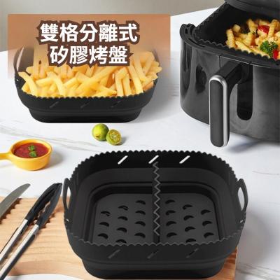 商品名稱:雙格分離式矽膠烤盤 矽膠空氣炸鍋烤盤 廚房用品 空氣炸鍋配件 炸鍋烤盤 可拆式烤盤 健康烹飪 少油料理