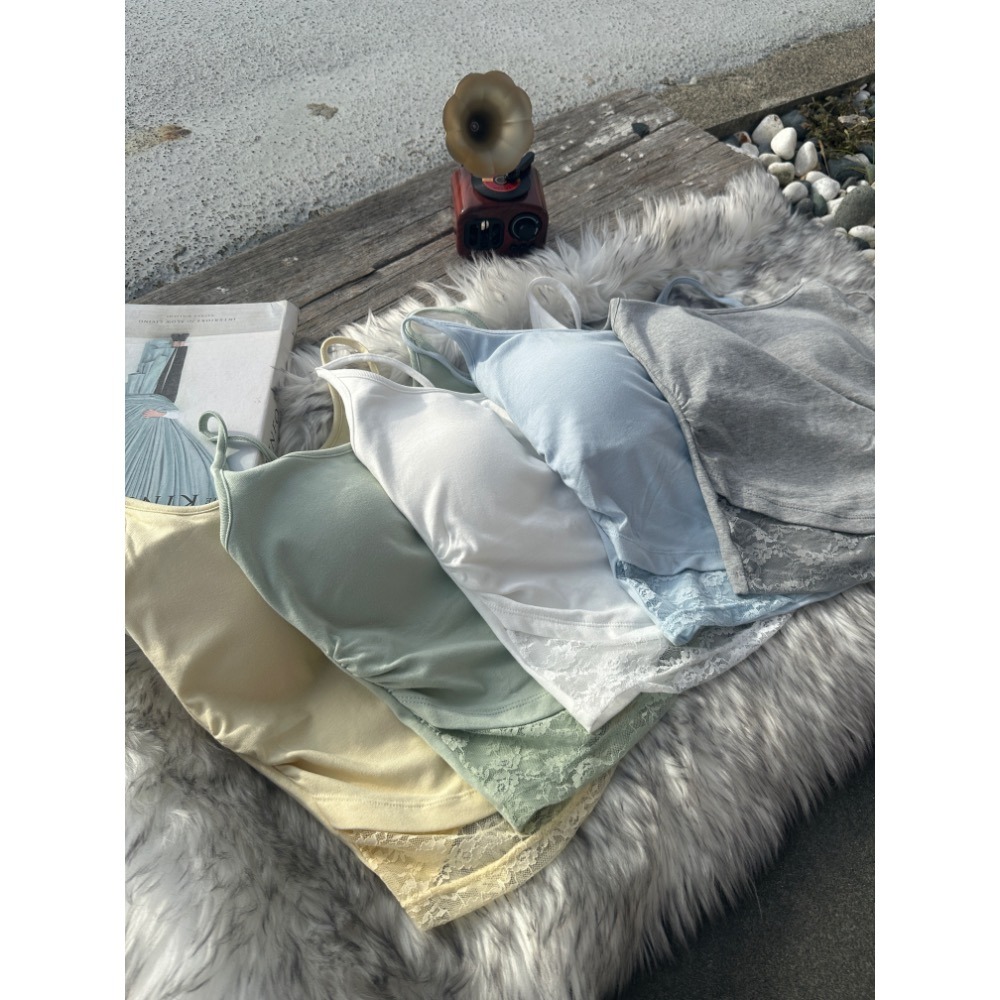 現貨|假兩件蕾絲側抓皺小可愛背心bratop