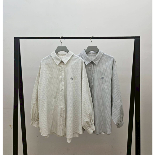 現貨| 胸口刺繡直條紋大版襯衫250924
