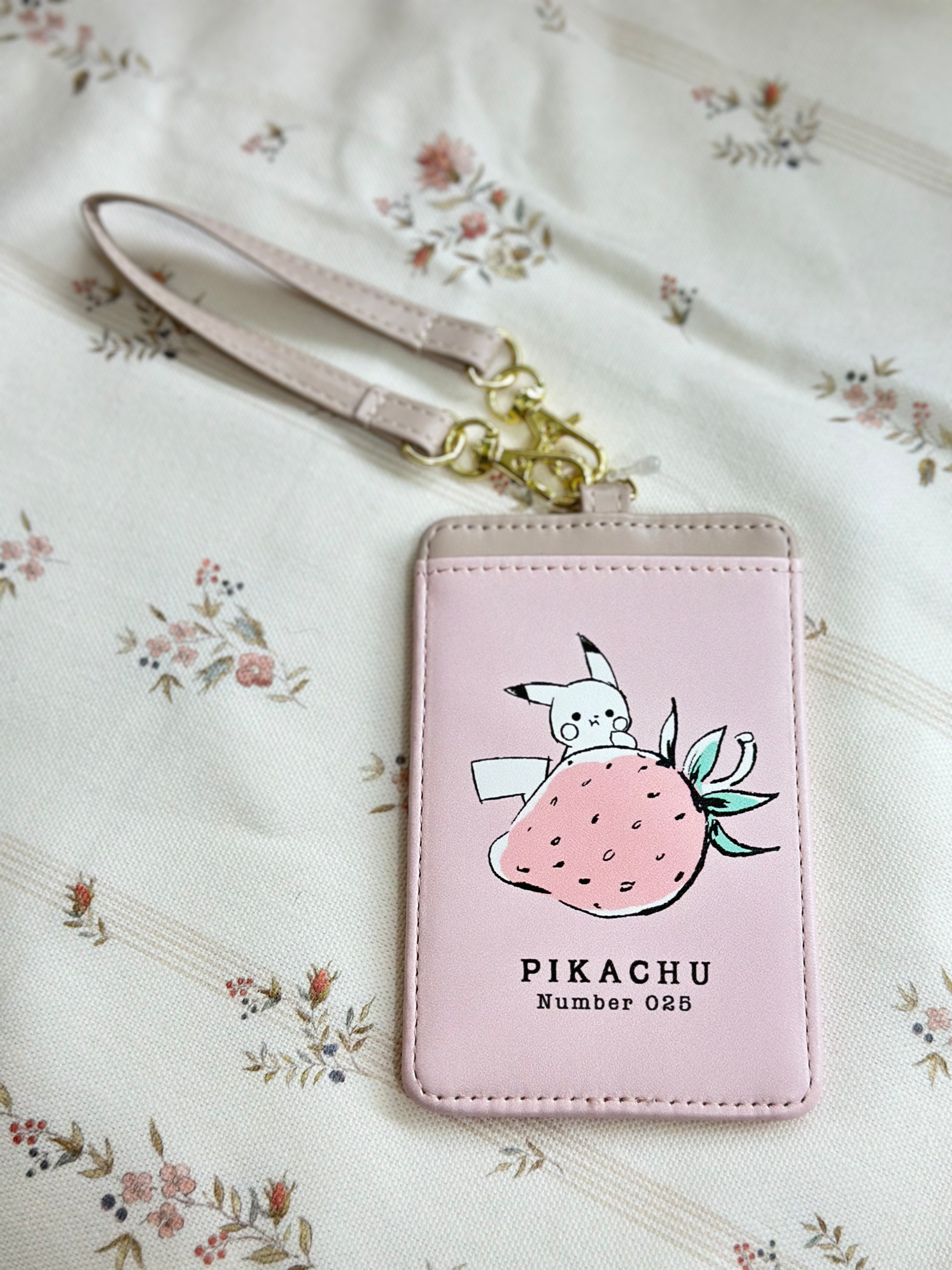 日本寶可夢中心帶回pokemon center pikachu 皮卡丘草莓粉紅證件套車票夾
