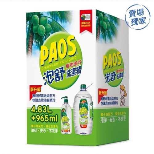 愛的小舖-泡舒植物強效洗潔精 965 毫升 + 4.83 公升補充桶 (1單1箱喔~超重無法出貨啊)