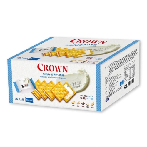 [限時特價]愛的小舖-Crown 多穀牛奶夾心餅乾 16公克 X 48入 效期: 2024年7月份