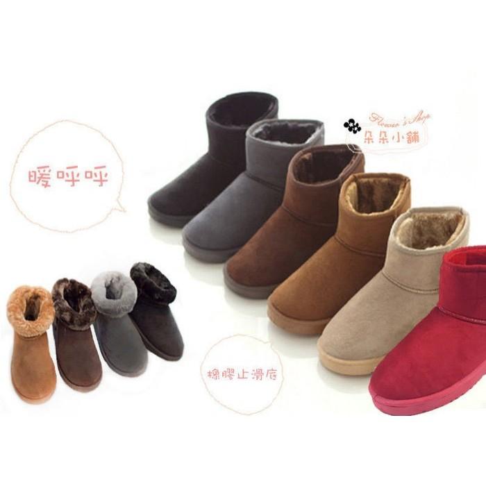 台灣現貨∞ 【秋冬新品‧暖呼呼毛茸可反折兩穿式短筒雪靴(橡膠底)】 棕 / 咖啡 / 黑 / 紅 / 粉/藍/豹紋