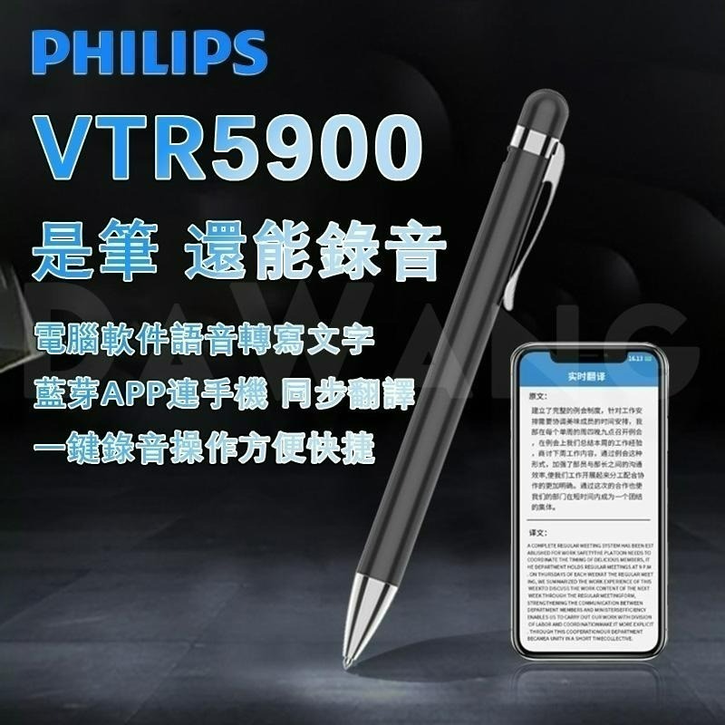 ✨台灣出貨+免運【Philips VTR5900 錄音筆】筆型錄音筆 免費語音轉文字 藍芽錄音筆 一鍵錄音 AI錄音筆