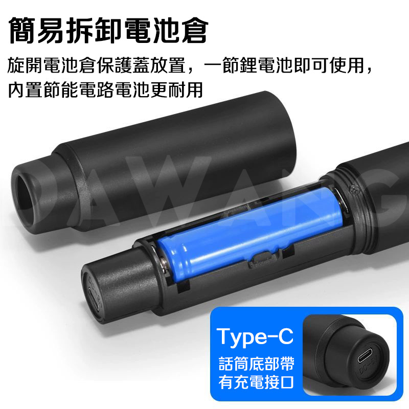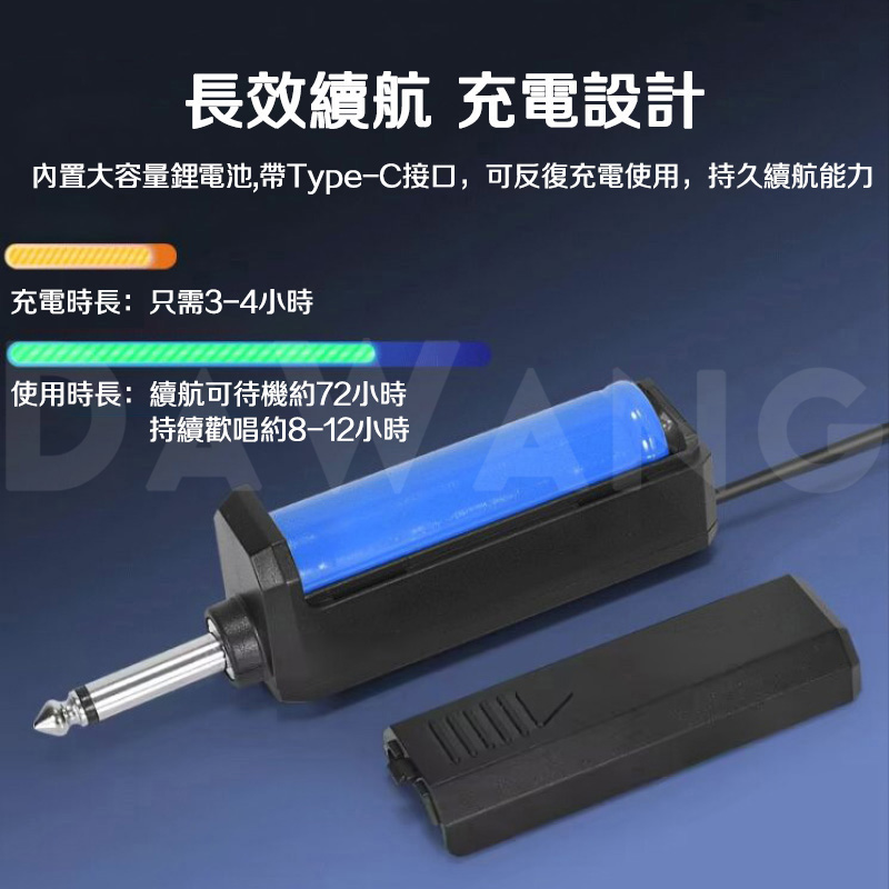 麥克和接收器均內置大容量18650鋰電池可充電、可更換,家庭戶外通用