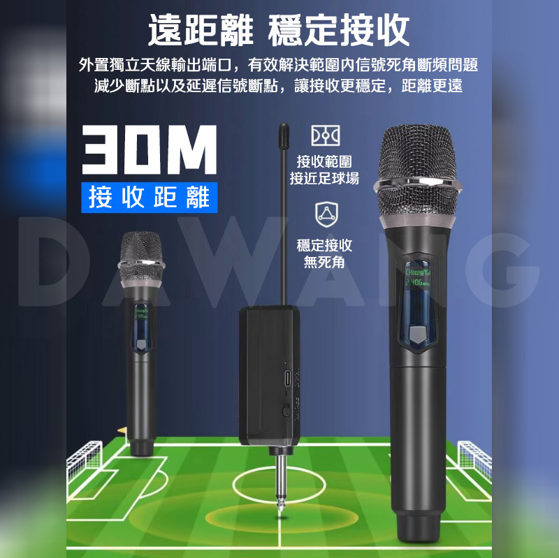 高性能無線麥克風技術,信號穩定,可穿墻,可達約50米無線接收距離