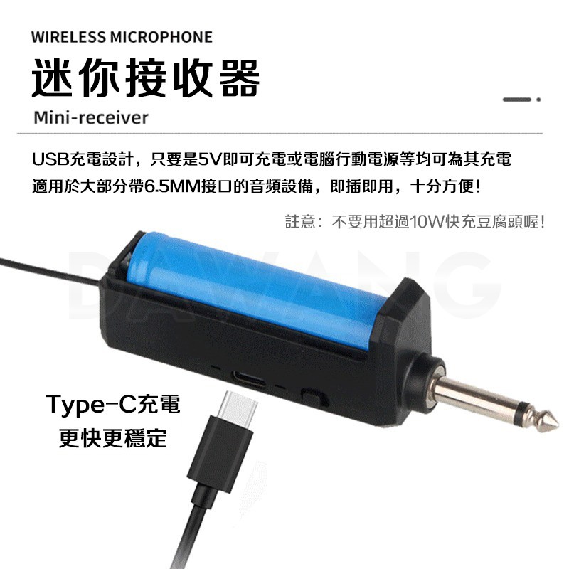 麥克和接收器均內置大容量18650鋰電池可充電、可更換,家庭戶外通用