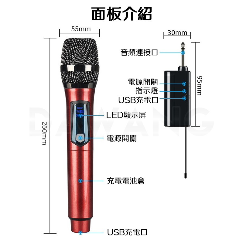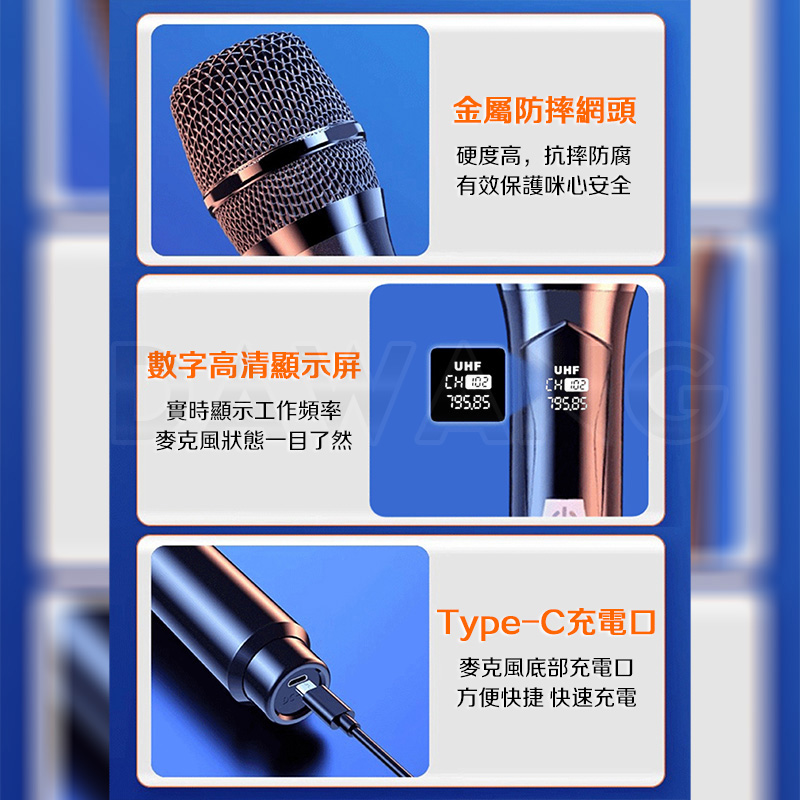 -特點: 充電式無線 | V段固頻 | 麥克風話筒 | 即插即用 | 智能LED顯示