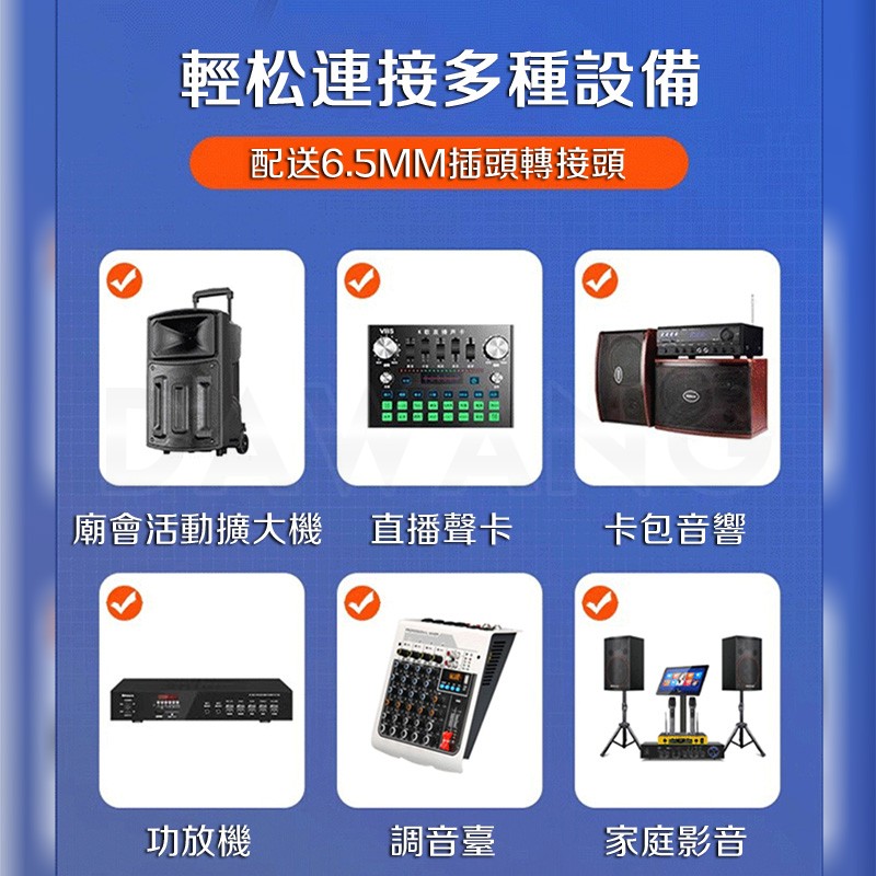設有話筒接口設備均可連接使用:直播聲卡、錄放機、筆記本、調音臺、臺式電腦、卡包音箱、大巴、拉桿音箱