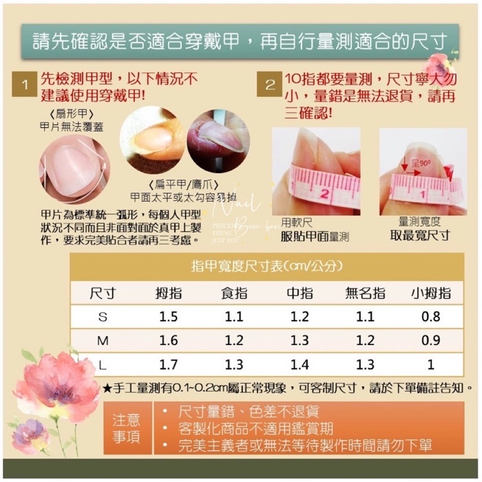 為台灣美甲師手作穿戴甲,比較有問題的指甲可以聊聊,方便闆娘多附備品