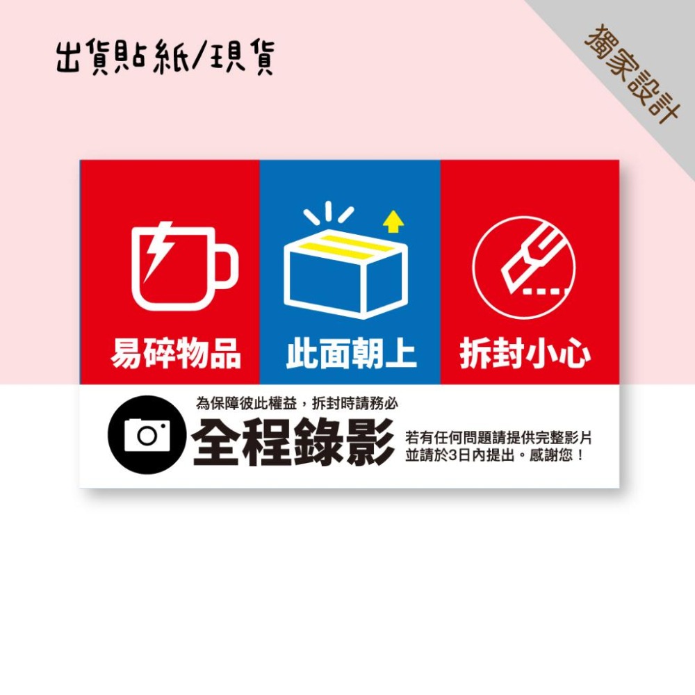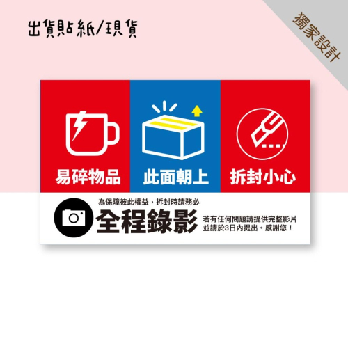 現貨【出貨貼紙 買一組多送一份】1張0.9元 寄件貼紙 開箱錄影 警語貼紙 此面朝上 易碎品貼紙 防水貼紙 寄件 09
