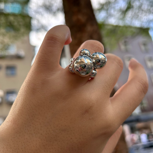 \浮誇請進/ 日系 銀珠 葡萄串串 戒指