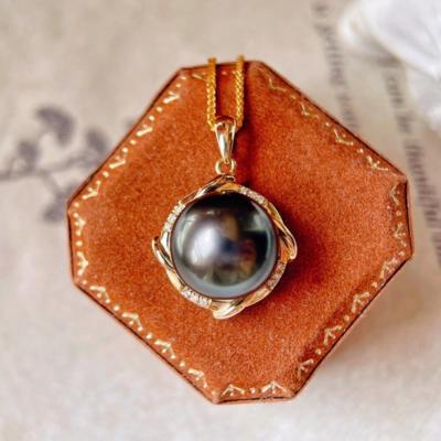 18K金鑲鑽石 天然黑珍珠10-11mm正圓