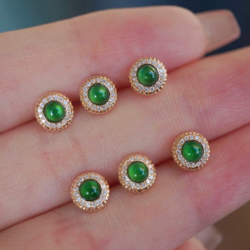 ♒️✅天然帝王綠翡翠耳釘•18k金鑽石鑲嵌💎