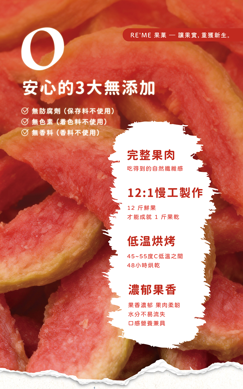 紅心芭樂果乾, 高纖果乾, 台灣果乾推薦, 無添加健康零食, RE'ME果菓