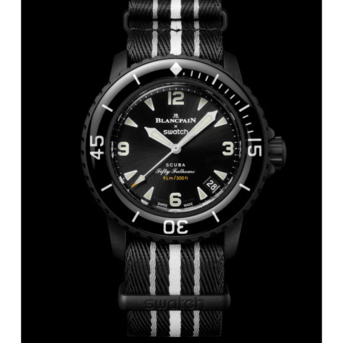 錶帶:以回收漁網製成的 NATO 錶帶。黑色 Bioceramic 生物陶瓷錶扣和錶環