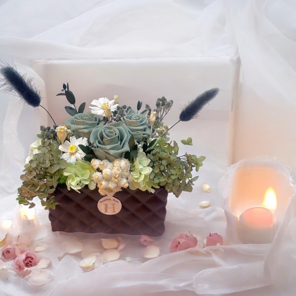 ⭐️花材的持久度取決於主人的照顧狀況,另外擺放時間越久,些許退色是正常的。