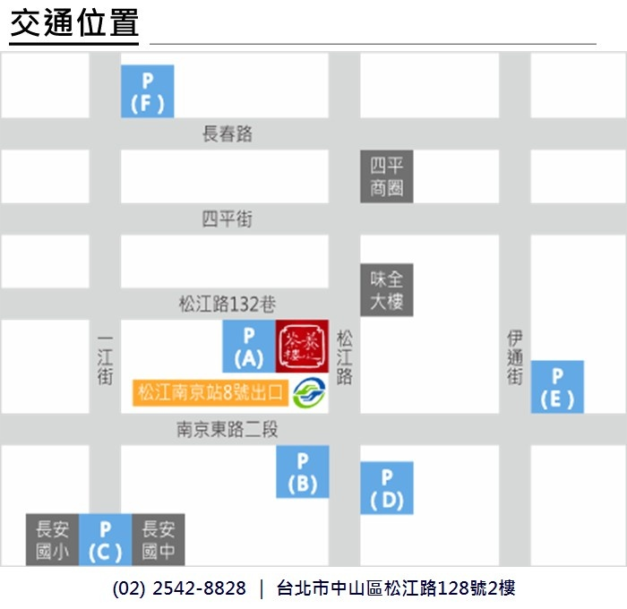 地址:台北市中山區松江路128號2樓(捷運松江南京站8號出口)