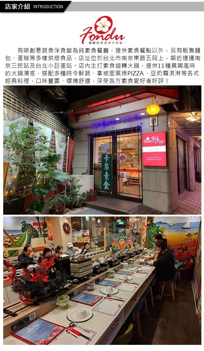 1. 單張券可1人於《有哆創意蔬食洋食舘》享用平日迴轉火鍋吃到飽乙客,且憑券再享一份招牌燉飯。(已含服務費)