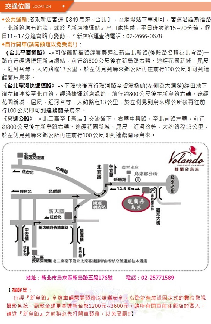 地址:新北市烏來區新烏路五段176號 電話:02-26616555
