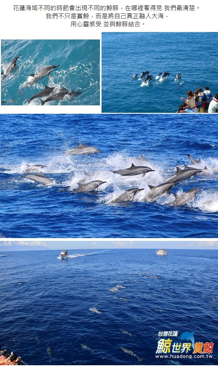 別忘了,花蓮東海岸景緻也非常迷人,七星潭灣、清水斷崖的壯麗,準備好相機,讓鯨世界賞鯨帶領您領略花蓮海洋風情吧。賞鯨資訊
