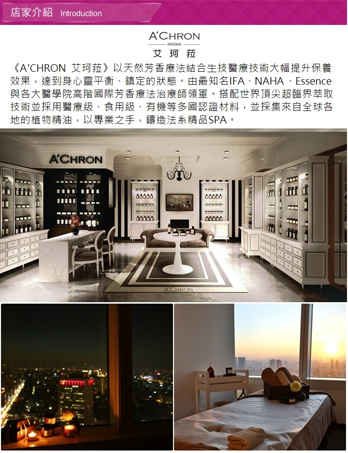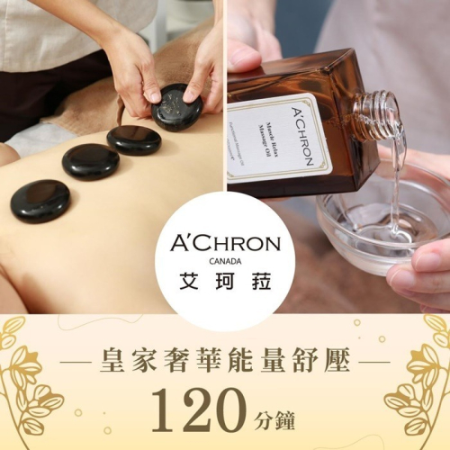 1.單張可1人於《A'Chron艾珂菈》使用皇家奢華能量舒壓120分鐘(純手技100分鐘)乙次。
