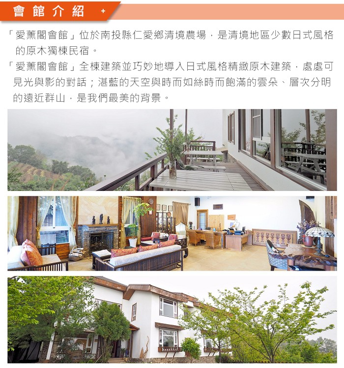 愛薰閣會館,位於南投縣仁愛鄉清境農場,是清境地區少數日式風格的原木獨棟民宿。