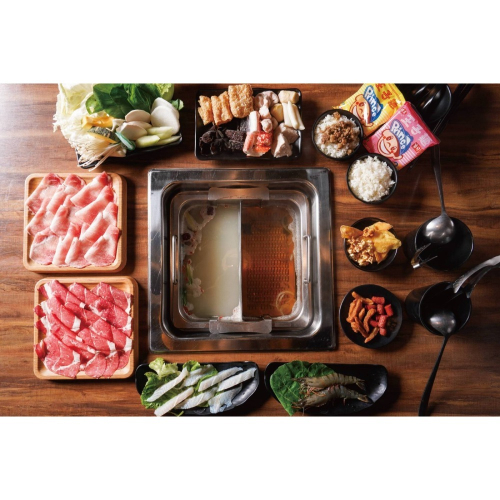 ※湯底:招牌龍骨/柴魚昆布(二選二)+安格斯翼板牛一盤+國產桐德黑豚一盤+鮮魚片一份+巴掌大草蝦二隻。