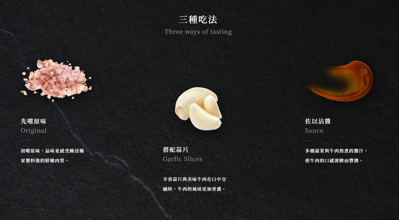 王品為了烹調出這道獨具中國口味的牛排,以特殊中國口味佐料醃浸兩天兩夜,將完全入味的帶骨牛小排,慢火燒烤一個半小時,再以高溫瓷盤盛裝,以保持牛排的香嫩風味,使全熟的牛排雖不帶血絲,卻異常鮮嫩,咬勁十足。王品歷經數千小時的嚴格選材、精心研發之後,發現一頭牛只有最精華的第六至第八對肋骨,得以使『王品牛排』的精髓脫穎而出,是全國唯一能在250℃烤箱烘烤一個半小時,還能保持100% 鮮嫩度的牛排。為了讓貴賓們能享受到如此珍貴的王品牛排,王品從牛排品質的挑選就踏出最嚴格的第一步。