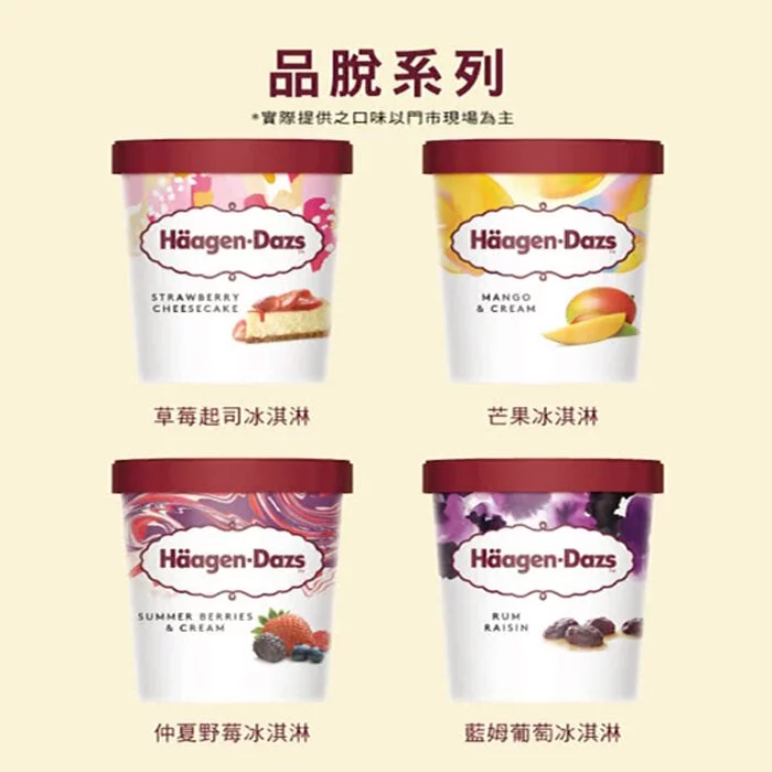 •特殊限量口味如優格、小花園系列僅限哈根達斯門市兌換,並請依實際定價補價差