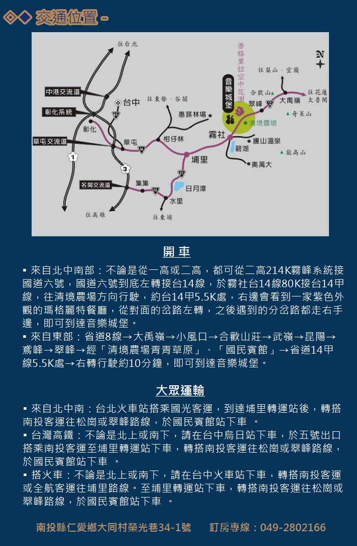 音樂城堡地址:南投縣仁愛鄉大同村榮光巷34號