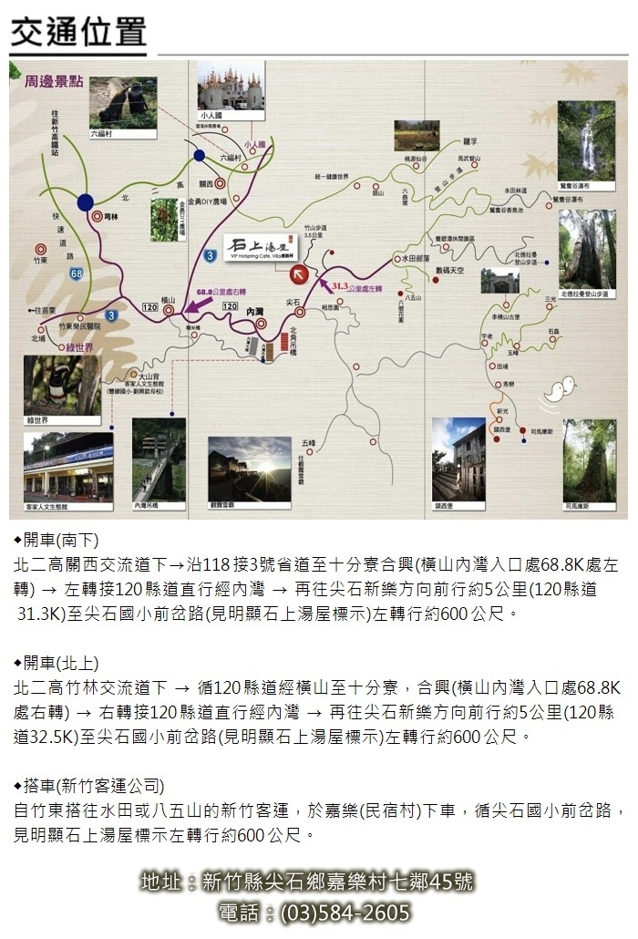 地址:新竹縣尖石鄉嘉樂村七鄰45號 電話:(03)584-2605