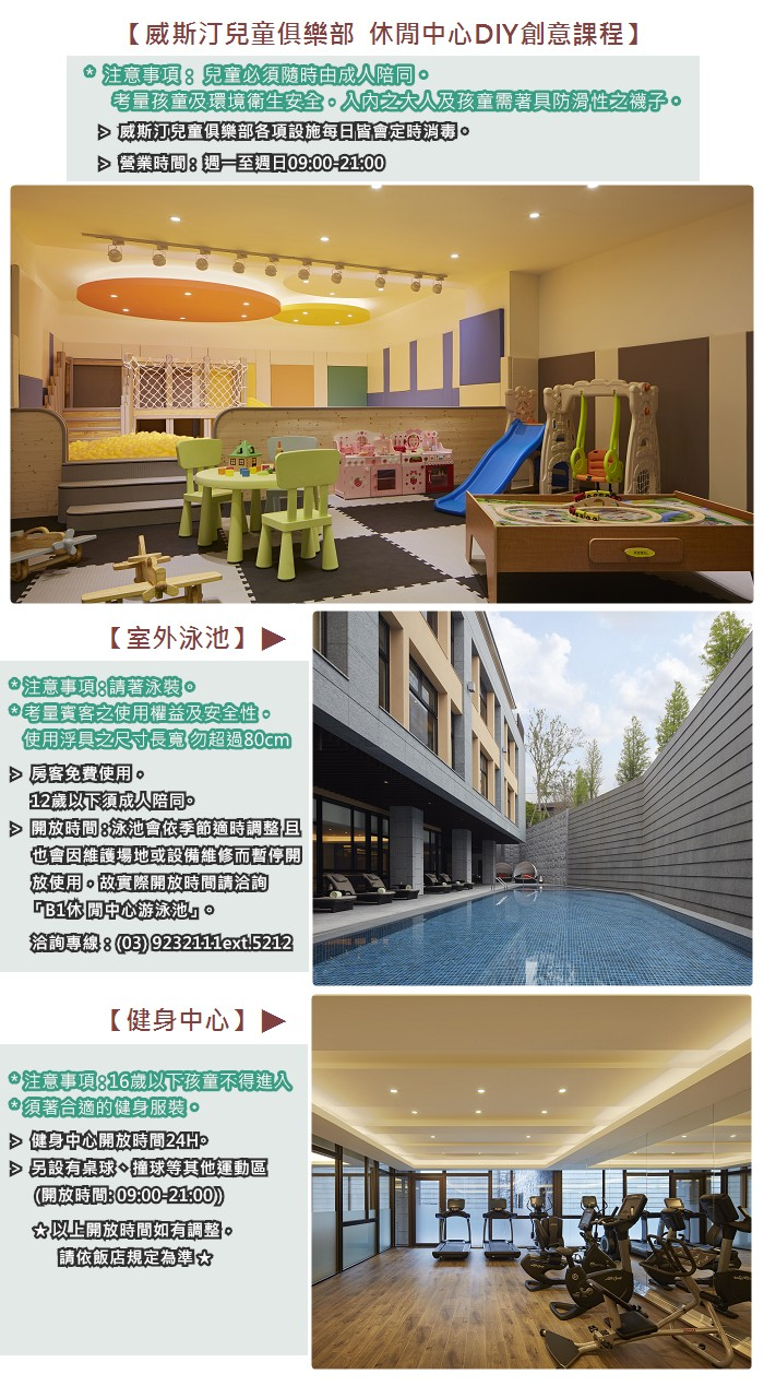 2.專案內容含:知味西餐廳自助式早餐2客及晚餐2客,入住期間免費使用休閒中心、戶外泳池、健身房、兒童俱樂部及露天風呂。