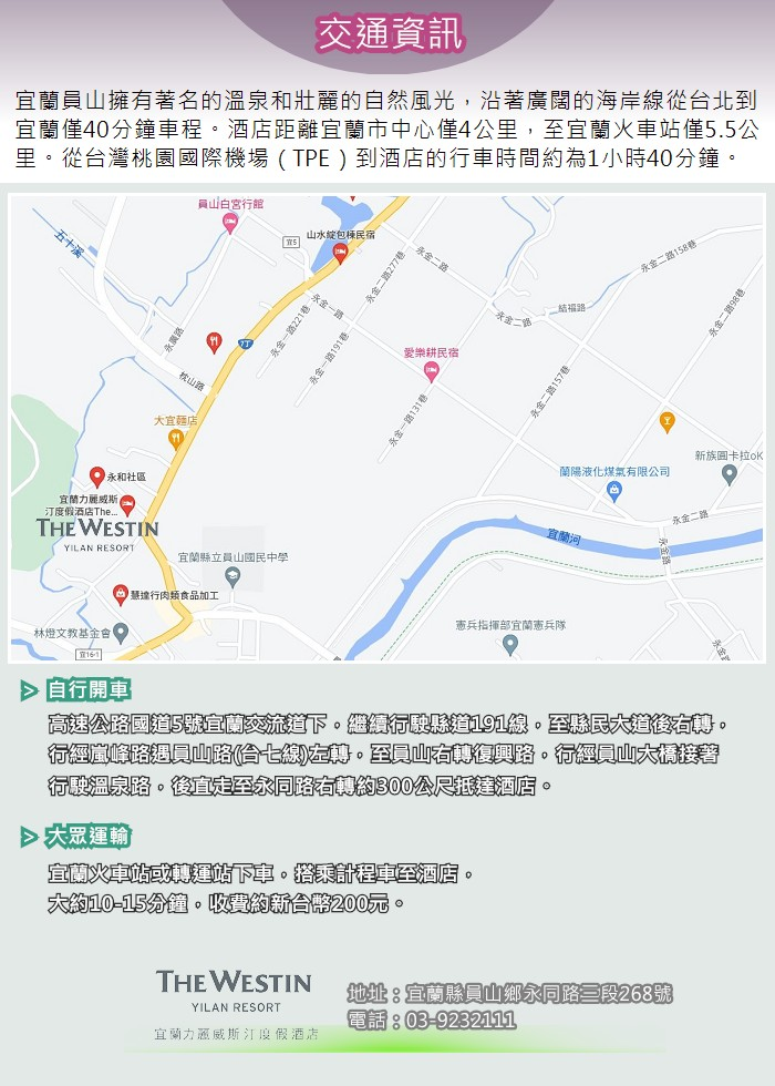 7.相關未盡事宜以飯店公告為準,宜蘭力麗威斯汀度假酒店對優惠方案有最終解釋權利。
