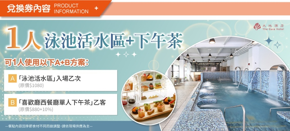 1.單張券可1人於北投大地酒店使用以下A+B方案(須於同一天使用完畢)