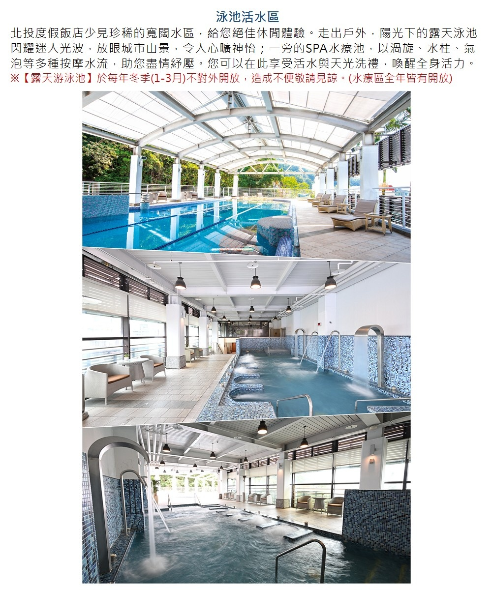 ※1-3月露天泳池暫停開放(水療區全年皆有開放)。